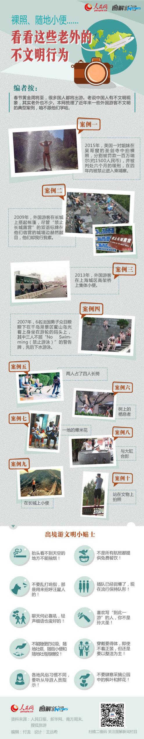 春节黄金周将至,很多国人都将出游。老说中国人有不文明现象,其实老外也不少。本网梳理了近年来一些外国游客不文明的典型案例,咱不跟他们学哈。(责编:郭鹏飞)